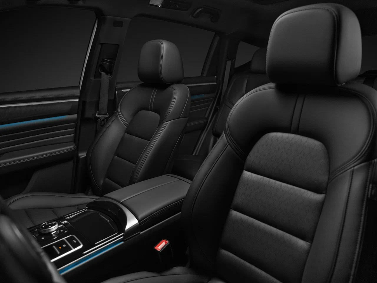 - Центральная консоль с мягким подлокотником, с черным глянцевым пластиком сверху